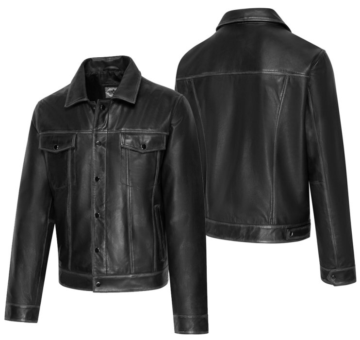 Blouson 100% Cuir d’agneau souple Type Western et Biker