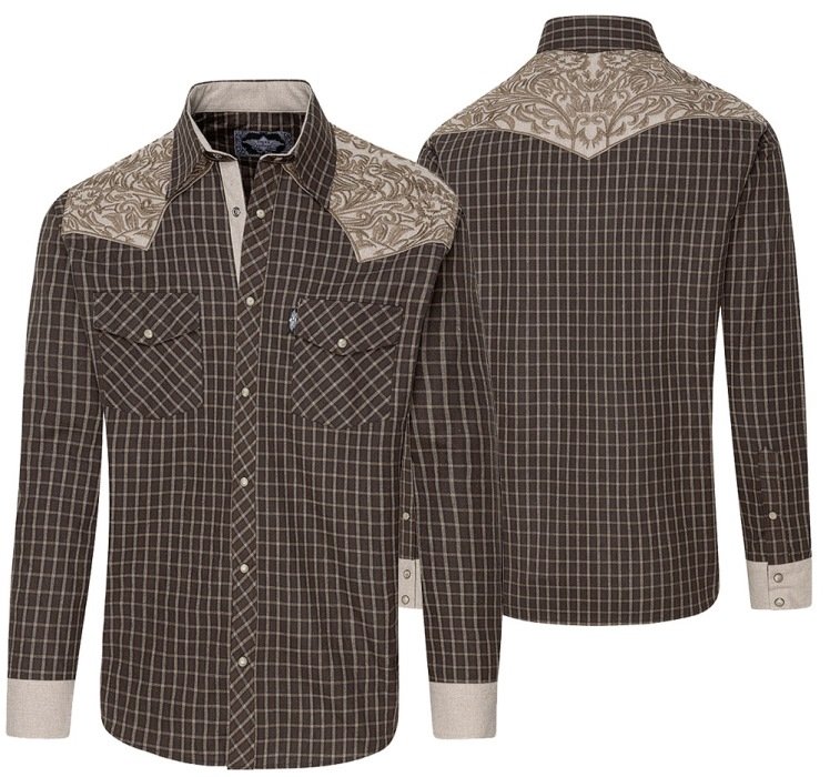Chemise western à carreaux avec empiècement brodé.