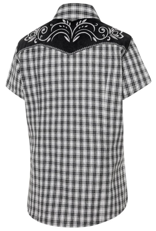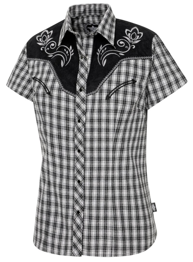 Chemisier léger à manches courtes motif carreaux avec empiècement western et boutons pression .