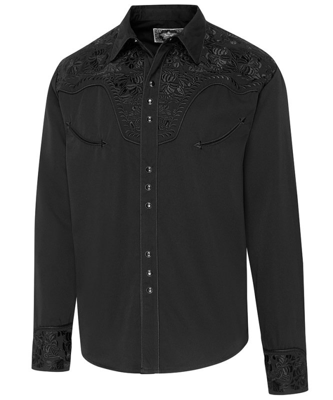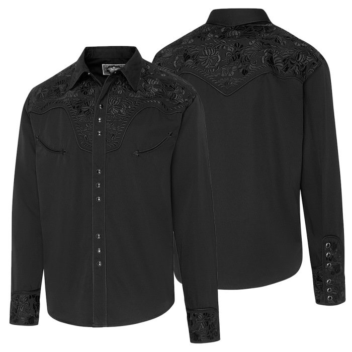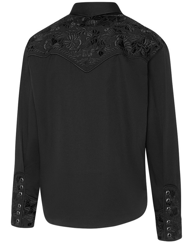 Chemise western noire avec magnifiques broderies sur l’empiècement épaule, dos et poignets.