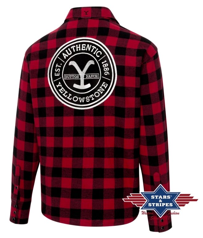 Chemise western Yellowstone AUTHENTIC 1886, ajoute une touche d’élégance chemise a carreau rouge et noir homme. Les poches rajoute un style cowboy et routier, les poignets à triple bouton évoquent la mode western classique et moderne. Cette blouse est brodée du logo officiel de Yellowstone et le célèbre « Y » sur le col la rend officiel. allie une texture facile d’entretien à une coupe ajustée qui met en valeur la silhouette — un véritable accroche-regard, pas seulement pour les fans de la série Netflix 1883- 1923- et Yellowstone. À associer avec un jean noir pour un look class complet et une paire de botte de travail