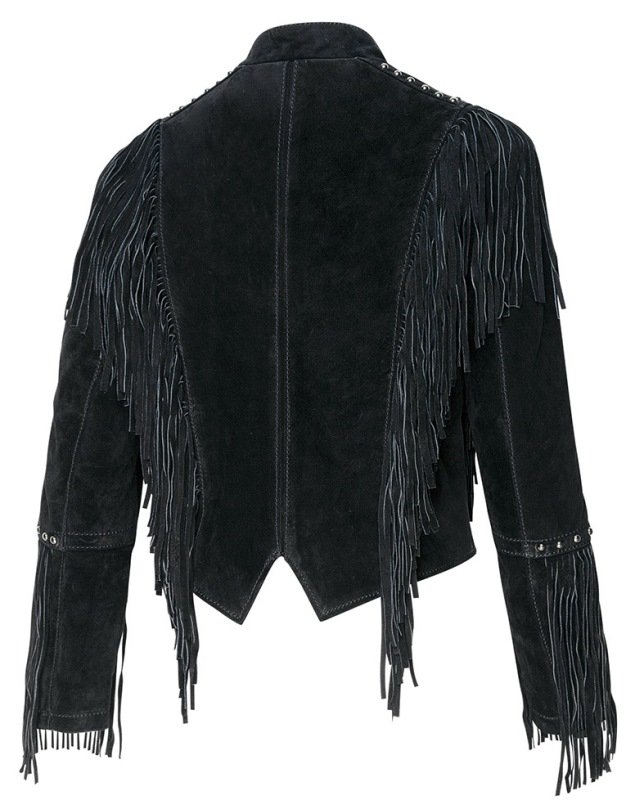 Décorée de franges devant, au dos